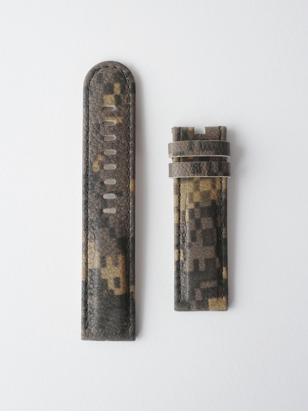 Brown pixel camo leather, Murray Mint lining and dark brown stitch.