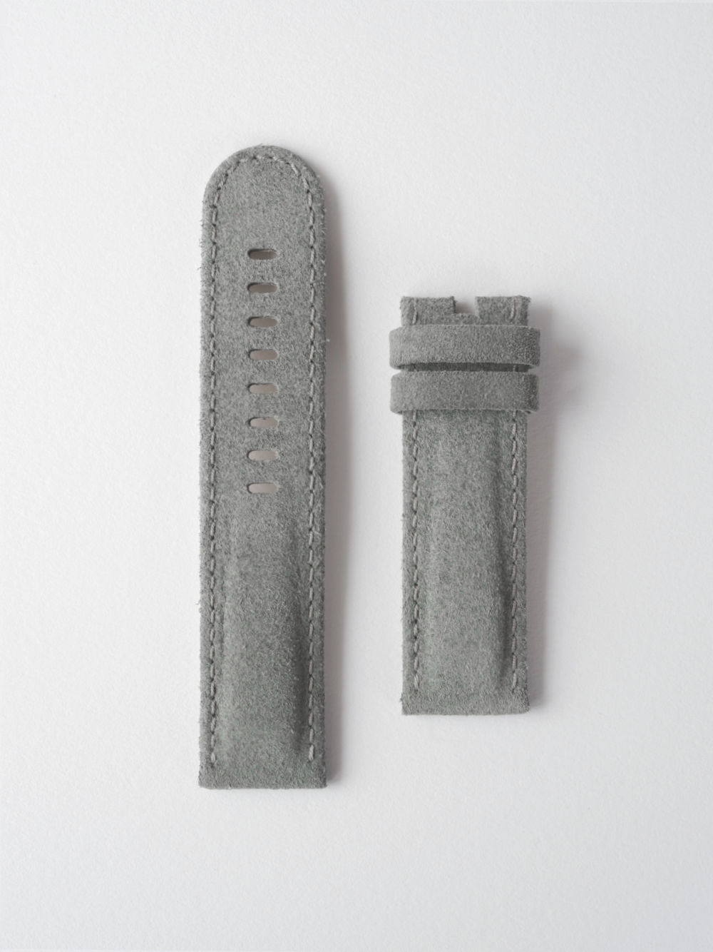 Blue grey suede strap, corse suede from Milan. Murray Mint lining, matching stitch.